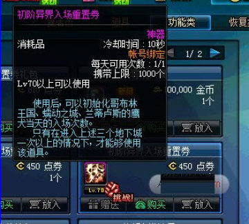 作者:qqtn冬冬 人气:0dnf异界入场重置券礼包在商城中上架了,售价为810点券,在商城中就可以购买得到打开后可以得到初级和高级异界入场重置券,下面是详细的内容介绍。