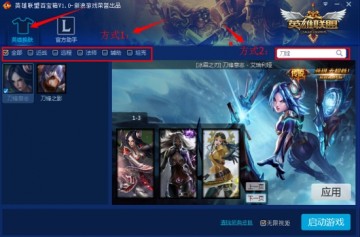 方式2:通过搜索栏,输入英雄名称的关键字,点击搜索按钮,即可精确锁定皮肤