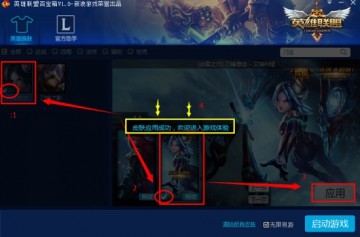 如下图,在软件端点击1,开启腾讯游戏助手;点击2,进入游戏窗口,在加入队伍后,选择好在游戏中的英雄,不要点击确定,此时返回工具上,找到对应英雄皮肤,点击应用,提示应该成功,再切换到游戏窗口,皮肤就这样加载完成啦