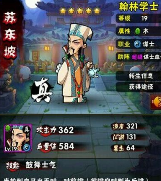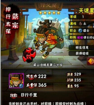 技能:当轮到自己出手时,对阵中除自己以外生命值百分比最低的友将及自身恢复相当于施法者攻击力130%的生命值。单体奶爸,在个别副本有特殊作用,在加血追击阵中并不适用,毕竟加的不一定是鲁智深或武大郎这样加血输出的武将,而且只能加一个。
