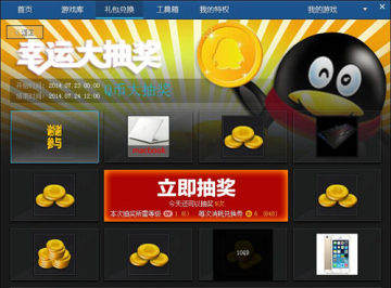 活动内容:在活动期间内,TGP礼包中心内将上架Q币幸运大抽奖活动。奖品多多,机会多多,赶快来参与吧!