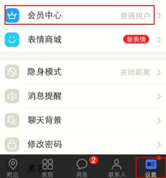 1、点击进入陌陌中心,然后点击右下角的设置,进入会员中心