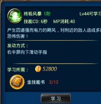 3.技能描述,产生4道旋风,造成多段恐怖伤害,比原本2道旋风伤害提升要多,关键还是在于范围变大,还能把boss无限浮空,不过12本金技能书确实够难学的。