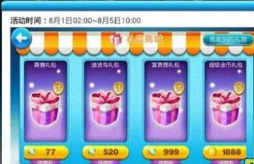 天天酷跑礼包商城将会在8月2日凌晨2点开启,主要是因为七夕活动的关系,礼包商城里有富贵狸礼包、波波鸟礼包、真情礼包,超级金币礼包,详细的七夕礼包内容请点击七夕礼包具体介绍>>,活动时间截止于8月5日10点,玩家赶紧存好钻石,刷小号互送礼包吧!大家要珍惜这次机会哦~~
