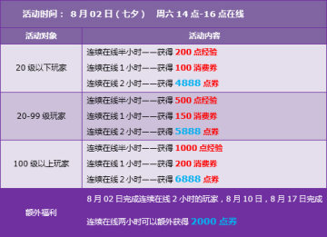 拥有【回归用户】或【超级回归用户】道具的玩家,每天登录游戏后,均可获得一张2小时双倍经验卡。