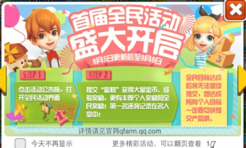 作者:qqtn丫丫 人气:0全民农场新出活动,全民农场公报板在什么位置?全民农场活动公告牌在哪?很多玩家今天(8月5日)都在问这个问题,小编发现游戏中根本找不到公告板在哪,一起来看看吧。