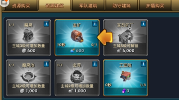 2、金矿:金矿能产出金币,升级金矿能提升金币产出速率和增大金币暂存库容量,请注意及时收取金币以免它无法再继续生产。