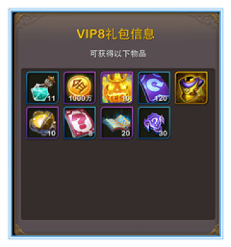 除了上述提到的VIP展示外,获得VIP资格的玩家,还将获得紫色强力傻馒一枚!与此同时,战斗四倍速、解锁托管等贴心服务让玩家游戏更加轻松,购买体力次数上限、强化装备暴击几率、好友赠送接受体力次数上限、BOSS免费召唤次数、摇钱树购买次数、十字军重置次数也都翻倍!