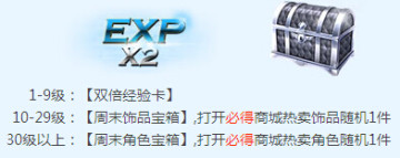 周末福利,14:00-16:00连续在线120分钟,30级以上的玩家必得周末角色宝箱。