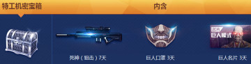 打开【特工机密宝箱】,有几率获得商城热卖武器、巨人口罩、巨人名片 等道具。