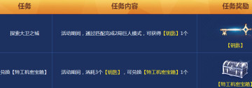 作者:qqtn冬冬 人气:0枪神纪在8月15日将开启探索大卫之城活动,在活动期间玩家们消耗3个钥匙,可兑换特工机密宝箱,下面带来了详细的活动内容介绍。