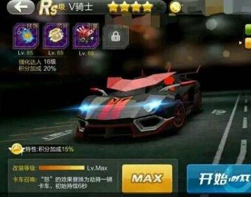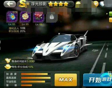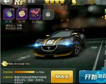 天天飞车夜影是一款比较豪华的赛车,满级属性积分加成15%