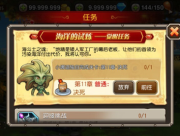 任务的第三环,到了真正考验英雄实力的时候了。彪悍的小娜迦MM接到的任务是单挑第11章的普通副本。小编刚刚去试了下,基本上难度不大。不过也有英雄会被要求携带队伍群殴某一关卡哈。