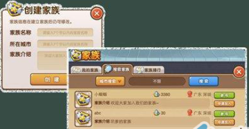 快和小伙伴们一起建个家族吧,麻麻再也不用担心没人陪你玩了!镇长满15级创建了家族后,玩家们可以以游客身份参观访问家族,也可以申请加入成为家族成员。在家族里,大家可以一起大聊特聊、畅所欲言,相互送花、收花,还可以获得爱心和魅力值呢!