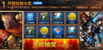活动期间预付费开通蓝钻,既有机会赢取齐天天大圣英雄及77全英雄礼包!