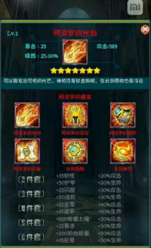七星阿波罗套装一共6件,分为阿波罗的光剑,阿波罗的王冠,阿波罗的铠甲,阿波罗的火翼,太阳图腾,太阳神石。以下是部分装备属性和套装加成。