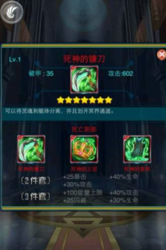 七星死神套装一共三件,分为死神的镰刀,死神的王冠,死神的披风。以下是部分装备属性和套装加成。
