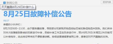 天天酷跑在8月25日因服务器问题,导致很多玩家都损失了不少的钻石,所以官方已经发布了补偿公告了,补偿正在紧张进行中,预计8月29日就会把补偿发放给受影响的玩家。