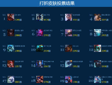 1、从8月28日至9月3日,众多英雄皮肤将在此页面进行投票,得票数最高的前10款皮肤,将在投票结束后作为当周折扣促销皮肤销售。