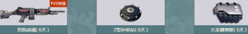 烈焰战魂( 6天 )、Z型补给站( 6天 )、大杀器弹匣( 6天 )