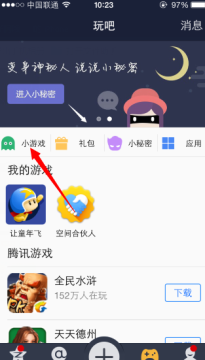 1、登录手机QQ空间,点击玩吧里的小游戏,如图所示。