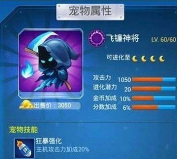 宠物技能:狂暴强化。主机攻击力加成20%