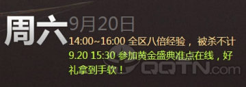 内容暂时还未更新,在周末痛快玩第三周活动中,周六整点在线已经预告,9.20 15:30 参加黄金盛典准点在线,好礼拿到手软!