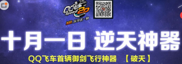 作者:qqtn小影 人气:0十月一日,QQ飞车非常逆天的神器首辆御剑飞行神器破天逆天降临,很多飞车玩家也是对它十分的感兴趣,那么这辆御剑飞行神器怎么获得呢,到底怎么样呢?下面就跟小编一起来看看吧!