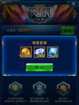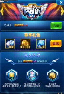 超级贵族LV6礼包:700钻石、70000金币、10扫荡卡