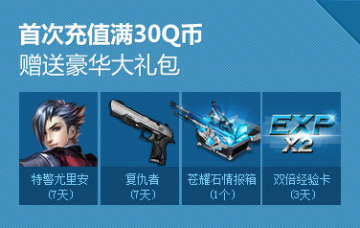 首次充值慢30QB赠送豪华大礼包