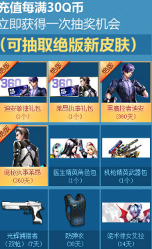 充值每满30Q币立即获得一次抽奖机会(可抽取绝版新皮肤)