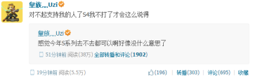 作者:qqtn小天 人气:0皇族UZI将退出S4总决赛?北京时间11日晚10时许,皇族战队UZI却发表了两则让所有人跌破眼镜的个人微博。他在微博中称不想再继续参与今年S系列比赛。微博原文如下: