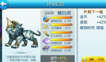 特殊技能:任意奖励关卡中得分4倍,开局冲刺700米,终极冲刺