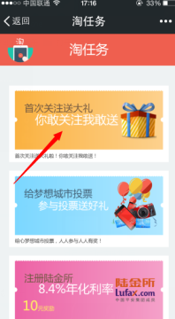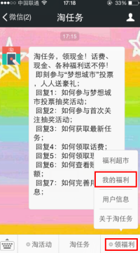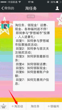 2、关注完成后,点击进入系统所发的消息,进入淘活动;