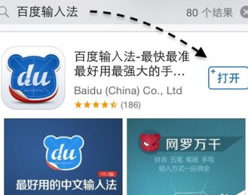 进入App store搜索百度输入法、搜狗输入法等软件,自己习惯使用的输入法,小编推荐大家使用百度输入法,搜索完成后直接点击下载,就可以完成自动安装。