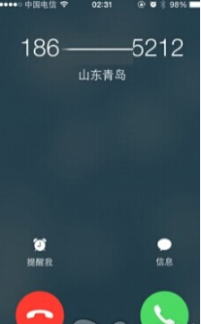 其实来电归属地不要设置,当大家将系统升为IOS时,直接就享有来电归属地的功能,无论是哪个号码打进来,都会显示的哦!效果图如下: