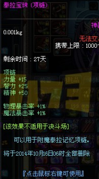 属性看起来不给力?告诉你们哦,泰拉遗迹的首饰拥有专属的附魔宝珠,不过宝珠是通过30W金币+3个泰拉遗物购买的礼盒开启,但是宝珠属性随机,所以我每种宝珠礼盒都购买了三个,属性就没重复过……
