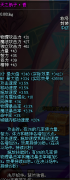再来看娇子的几条属性:双攻33,不戴称号物攻魔攻我们按照1100计算,百分比伤害提升3%,固定伤害无提升;60独立,我们按进图2000独立计算,固伤职业提升3%,百分比无提升;双暴3.3%,1.65%提升;BUFF计算比较复杂点,触发式的,攻击是3%几率35四维,释放是5%几率5%双暴,力量智力我们按进图2500计算,1.4%伤害提升,双暴就是2.5%,为了避免计算的进一步复杂难明,每个这也触发概率也不一样。我们把娇子的BUFF近似的计算为1.5%伤害提升。