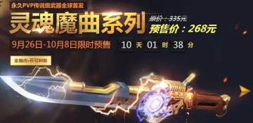 2.“灵魂魔曲”系列武器仅在预售期间以268Q币的八折超实惠价格获得,游戏内商城将在10月9日上架,以原价为335Q币售卖,且无豪华职业礼包;