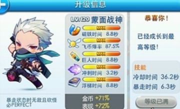 技能:暴揍状态时无敌且砍怪必perfect!暴走时间6.3秒