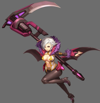手持镰刀的性感御姐,战斗以飘逸的走位和华丽的中程穿插技能著称。手持的镰刀是收割敌人的利器,长长的刀柄倒转过来即成为一门狙击长枪。