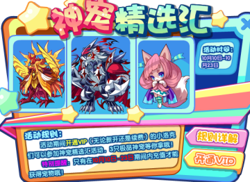 超级划算的神宠精选汇,千万不要错过哦!属于你的神宠,充值VIP就能打包带回家!