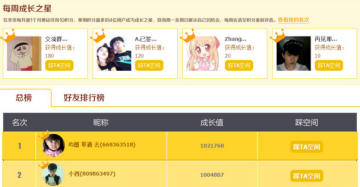 在活动页面开通1个月黄钻即可获得10积分,每周积分最多的用户即可成为成长之星,积分最高的前4名可以展示自己。