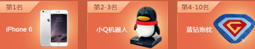 3、活动中,获得成长值最多的用户分别获得ihone6、小Q机器人、蓝钻抱枕实物奖励。