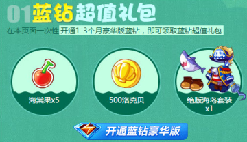一次性开通1-3个月豪华版蓝钻,即可领取蓝钻超值礼包