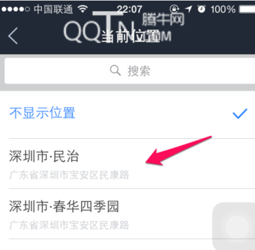 5、可以选择系统所提供的地理位置信息,点击即可;