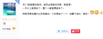 最近在论坛很多网友提出来AIR2外放声音过大时,屏幕下方喇叭处会出现明显震动,甚至有夸张的说震动桌子,首先一点:声音是本身就是由震动产生的,相信这个所有人都知道 。再一点,ipad air2这一次做的只有6.1mm,屏幕有9.7英寸,可以说又大又薄,那么自然震动你会感觉比上一代要明显。以下是网友关于ipad air2震动的反映: