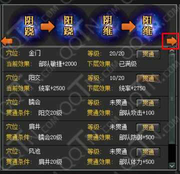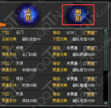 作者:qqtn冬冬 人气:0七雄争霸在29日已经开启了新的奇脉阙阴,)升级此穴位可提升武将攻击,使用琼浆可以获得气运值,下面是详细的功能介绍。