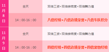 11月08日-11月30日周六周日15点、16点,所有玩家在整点均可获得1罐【甜心蜂蜜】,共可获得16罐【甜心蜂蜜】。