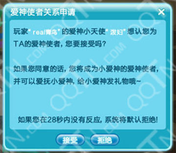 + 被邀请的玩家若接受申请,则成为发起申请玩家的爱神小天使的爱神使者。